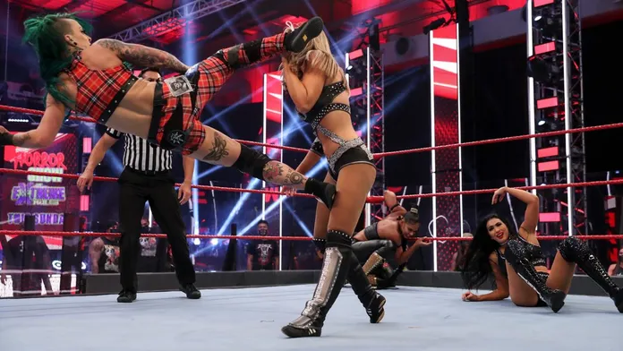 En coulisses, on retrouve Ruby Riott et les IIconics. Ces dernières pensent que ce soir elles affrontent Ruby dans un handicap match, mais Bianca Belair apparaît ; finalement, c’est bien un 2 contre 2 auquel nous allons assister. À la fin du combat, Riott sort Peyton Royce du ring, ce qui permet à Belair de faire son Kiss Of Death sur Billie Kay et de gagner la rencontre. Enfin une victoire pour Ruby Riott, en espérant que cela continue.