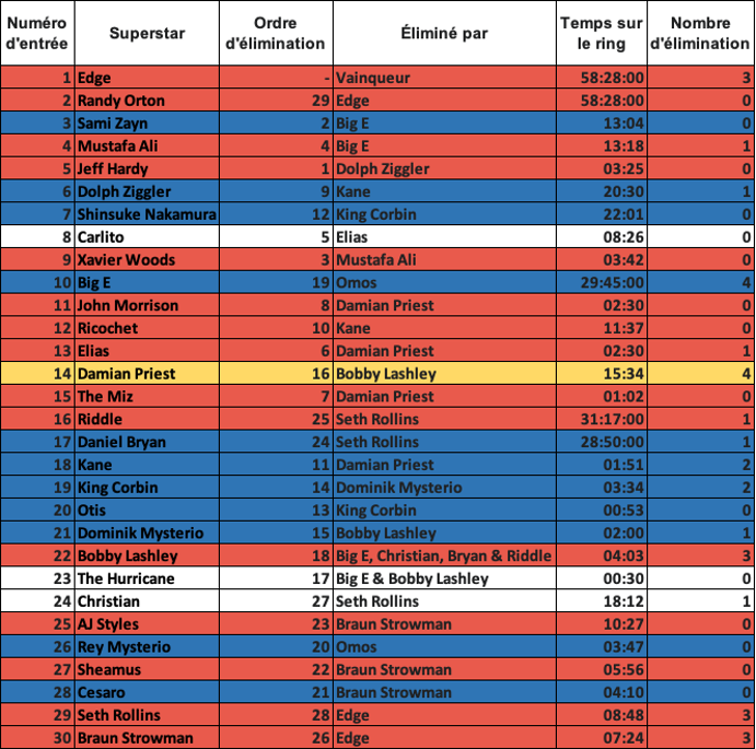 C'était un bon Royal Rumble dans l'ensemble, même si le match pour le titre de la WWE était trop court. Bianca Belair et Edge partent tout droit vers Wrestlemania. Le résultat du Rumble féminin à l'air de faire l'unanimité, quant au masculin, il divise totalement les fans. Dans trois semaines aura lieu Elimination Chamber, suivra ensuite Fastlane en mars.