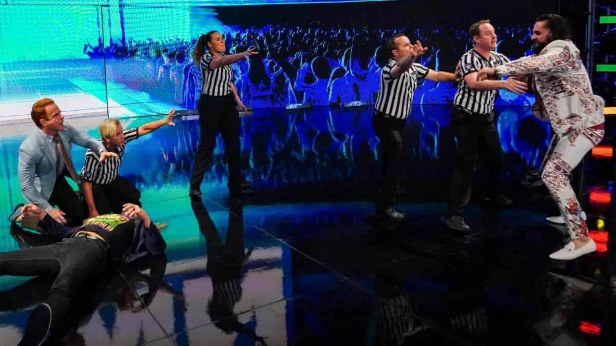 Après avoir subi les foudres du Hall of Famer la semaine dernière, Rollins s’est vengé cette semaine. Alors qu’Edge faisait son entrée, Seth Rollins l’a attaqué par derrière. Après plusieurs minutes de coups, Rollins attrape la caméra d’un cameraman, avant de frapper Edge au visage avec. Cette rivalité s’intensifie encore un peu plus!