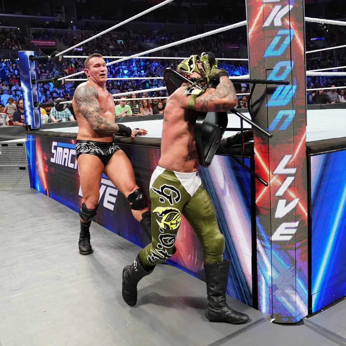 Match de rêve en main event à SmackDown cette semaine. Et quel match entre le 619 de ReyRey et les RKO de Randy Orton, ReyRey place son 619 mais prends juste derrière un RKO outta nowhere ! Randy Orton fait un second RKO dans le ring pour la victoire. Après le match Randy Orton attaque le luchador et l’envoi dans le poteau avec une chaise placée à son cou. Randy Orton part ensuite en Backstage avec le masque de ReyRey.